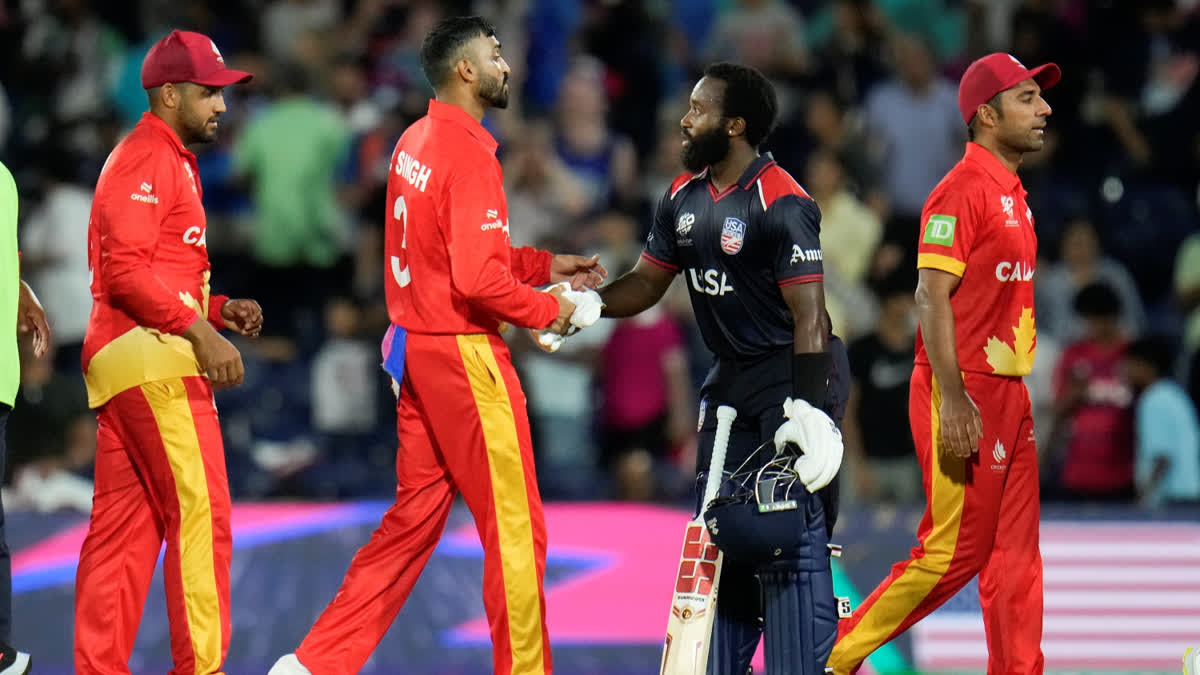 America vs Canada, T20 World Cup 2024: టీ 20 వరల్డ్ కప్ లో భాగంగా డల్లాస్ లోని గ్రాండ్ ప్యారీ స్టేడియంలో జరిగిన మొదటి మ్యాచులో కెనడాపై యూఎస్ ఘన విజయం సాధించింది. టాస్ గెలిచి బౌలింగ్ ఎంచుకున్న అమెరికా కు కెనడా ఓపెనర్లు దూకుడు బ్యాటింగ్ తో బెంబెలెత్తించారు. మొదటి బంతికే ఫోర్ తో స్టార్ట్ చేసిన కెనడా ఓపెనర్ ఆరోన్ జాన్సన్ దూకుడుగా బ్యాటింగ్ చేస్తూ 5 ఫోర్లు బాదాడు. 23 పరుగుల వ్యక్తిగత స్కోరు వద్ద ఔట్ కాగా.. 5 ఓవర్లకే 43 పరుగులు చేసి మొదటి వికెట్ కోల్పోయింది.