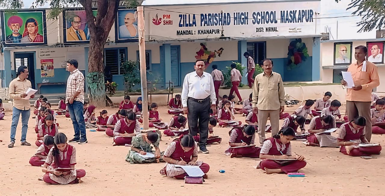 Essay competitions by Sathya Sai Seva Samithi in Khanapur schools: నిర్మల్ జిల్లా ఖానాపూర్ మండలంలోని మస్కాపూర్ ప్రభుత్వ పాఠశాలలో బుధవారం సత్యసాయి సేవా సంస్థ ఆధ్వర్యంలో బుధవారం విద్యార్థులకు వ్యాసరచన పోటీలు నిర్వహించారు. ఈ సందర్భంగా సత్యసాయి సేవా సంస్థల కార్యవర్గ సభ్యులు చింతపండు సత్తయ్య మాట్లాడుతూ, మండలంలోని పలు ఉన్నత పాఠశాలల్లో మానవుని పరిపూర్ణ జీవనంలో కృతజ్ఞత పాత్ర అనే అంశంపై వ్యాసరచన పోటీలను మస్కాపూర్ ఉన్నత పాఠశాలలో ప్రారంభించిటం జరిగిందని, ప్రతి ప్రాణి తాను బతుకాలంటే ప్రకృతిలోని మరో జీవిపై తప్పనిసరిగా ఆధారపడితేనే మనుగడ సాగిస్తుందని అన్నారు. ఈ విధమైన పరస్పర సహకారం కోసం కృతజ్ఞతను కలిగి ఉండాలని, అన్ని ప్రాణుల్లో కెల్లా మానవుని జన్మ ఉత్తమమైనదని, సాటి ప్రాణి పట్ల కరుణ, దయార్ద హృదయం కలిగి ఉండాలని పేర్కొన్నారు. అనంతరం ఖానాపూర్, సుర్జాపూర్, ఖానాపూర్ ఆశ్రమ బాలికల పాఠశాల, మస్కాపూర్ కేజీబీవీ, సత్తెనపల్లి, బీర్నంది ఉన్నత పాఠశాలల్లో వ్యాసరచన పోటీలు నిర్వహించారు. కార్యక్రమంలో ఎంఈవో సంధ్యారాణి, ప్రధానోపాధ్యాయులు బోనగిరి నరేందర్ రావు, మునీందర్, జీఎల్వీ జీఎల్వీ ప్రసాద్, కుర్ర శేఖర్, వెన్నం అంజయ్య, వినోద్రాజు తదితరులు పాల్గొన్నారు.