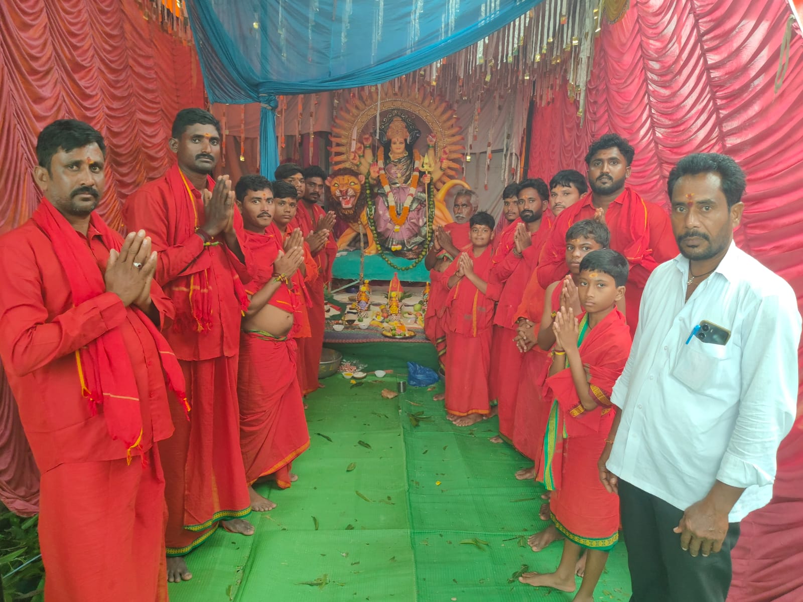 Khanapur Sharannavaratri celebrations: నిర్మల్ జిల్లా ఖానాపూర్ మండలంలోని బాదనకుర్తి గ్రామంలో సోమవారం దసరా పర్వదిన వేడుకల సందర్బంగా దుర్గ దేవి శరన్నవరాత్రి ఉత్సవాలను పురస్కరించుకొని అర్చకులు విగ్రహ ప్రతిష్ట చేశారు. అభిషేక, అర్చనలు, ప్రత్యేక పూజలు చేసారు. నైవేద్యం సమర్పించి హారతి ఇచ్చారు. ఈ సందర్భంగా యువకులు అర్చకులు సతీష్ ఆధ్వర్యంలో భవాని దీక్షలు తీసుకొని భక్తిశ్రద్ధలతో పూజలు చేశారు. గ్రామప్రజలు పాల్గొని అమ్మవారి దర్శనం చేసుకున్నారు. అలాగే ఖానాపూర్ పట్టణంలోని శివాజినగర్లో గల మహాలక్ష్మి ఆలయంలో, ముత్యాల పోచమ్మ తల్లి ఆలయంలో అమ్మవార్లకు ప్రత్యేక అలంకరణ చేసి పూజలు నిర్వహించారు.