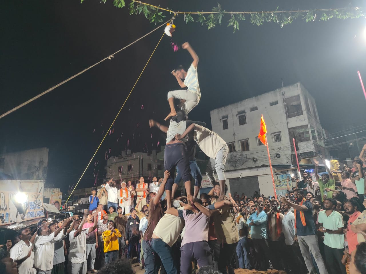 Krishnashtami Celebrations Khanapur: నిర్మల్ జిల్లా ఖానాపూర్ పట్టణంలోని తెలంగాణ చౌక్లో శ్రీ కృష్టాష్టామి వేడుకలు ఘనంగా కొనసాగాయి. ఈ సందర్భంగా శ్రీలక్ష్మీవేంకటేశ్వరస్వామి ఆలయంలో జారుడు గుంజకు ప్రత్యేక పూజలు చేశారు. హిందూ ఉత్సవ కమిటీ ఆధ్వర్యంలో ఏర్పాటు చేసిన కార్యక్రమంలో ఉట్టి కొట్టెందుకు 9 టీములు పాల్గొన్నాయి. పట్టణంలోని పలువురు యువకులు ఆసక్తిగా పాల్గొని ఉట్టి కొట్టారు. ఇందులో మొదటి బహుమతి పద్మావతి నగర్, రెండో బహుమతి శాంతినగర్, మూడో బహుమతి చైతన్య యూత్ యువకులు పొందారు. వీరికి సేవా భారతి సొసైటీ వారు బహుమతులు అందించారు. కార్యక్రమం తిలకించేందుకు ప్రజలు పెద్ద సంఖ్యలో తరలివచ్చారు. ఆద్యంతం ఎంతో ఆసక్తిగా కొనసాగింది. కార్యక్రమంలో సీఐ అజయ్, ఎస్ఐ రాహుల్, హిందూ ఉత్సవ కమిటీ మాజీ అధ్యక్షులు రాచమల్ల రాజశేఖర్, సభ్యులు శెట్టి శ్యాం మోహన్, కరిపె శ్రీనివాస్, అల్లాడి వెంకటేశ్వర్లు, చింతామణి శ్రీనివాస్ కృష్ణ, అడ్డగట్ల రాజన్న, ప్రధాన ఆచార్యులు చక్రపాణి నర్సింహమూర్తి, తోట సత్యం, తదితరులు పాల్గొన్నారు.