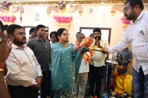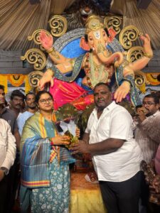 Nirmal Collector Abhilash Abhinav calls for peaceful Ganesh Shobha Yatra: నిర్మల్ పట్టణంలోని భాగ్యనగర్ కాలనీలో ఏర్పాటు చేసిన గణేశుని జిల్లా కలెక్టర్ అభిలాష అభినవ్ గురువారం దర్శించుకున్నారు. గణేశుని వద్ద ప్రత్యేక పూజలు చేశారు. గణేశ్ మండప నిర్వాహకులు కలెక్టర్ను శాలువాతో సన్మానించి, మెమొంటోలను అందజేశారు. పూజారులు తీర్థ ప్రసాదాలను అందజేశారు. ఈ సందర్భంగా కలెక్టర్ మాట్లాడుతూ, నిర్మల్ పట్టణంలో వినాయక శోభాయాత్రను ప్రశాంత వాతావరణంలో నిర్వహించుకోవాలన్నారు. వినాయకుని నిమజ్జనం సజావుగా సాగేందుకు అధికారులు అన్ని ఏర్పాట్లు పూర్తి చేశారని అన్నారు. అనంతరం సమీపంలో గల రాధాకృష్ణ మందిరంలో కలెక్టర్ ప్రత్యేక పూజలు చేశారు. ఈ కార్యక్రమంలో జిల్లా స్థానిక సంస్థల అదనపు కలెక్టర్ ఫైజాన్ అహ్మద్, తహసీల్దార్ రాజు, ఇతర అధికారులు, సిబ్బంది, తదితరులు పాల్గొన్నారు.