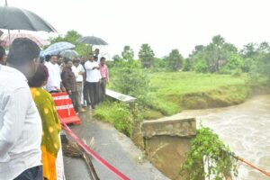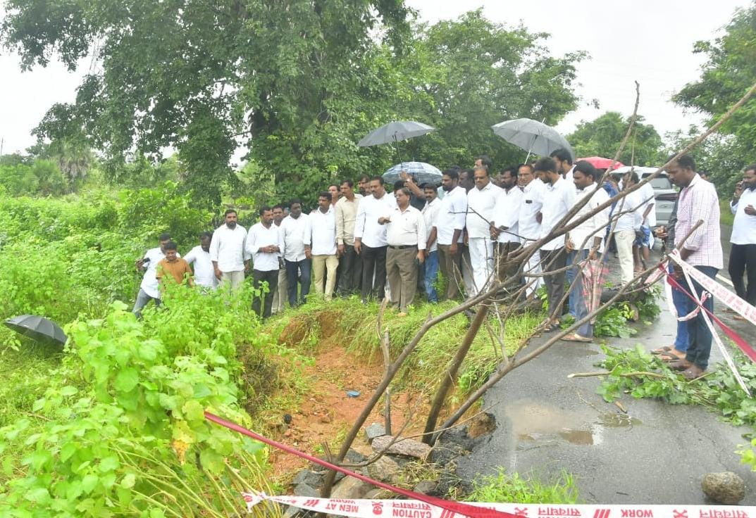 Nirmal rains damaged roads culverts repairs MLA Eleti Maheswar Reddy Swarna Project: నిర్మల్, ఆగస్టు 19 (మన బలగం): నిర్మల్ నియోజకవర్గంలో వర్ష ప్రభావం వల్ల దెబ్బతిన్న రోడ్లు, కల్వర్టులకు వెంటనే మరమ్మతులు చేపట్టాలని, ప్రజలకు ఎలాంటి ఇబ్బంది కలగకుండా చర్యలు తీసుకోవాలని నిర్మల్ ఎమ్మెల్యే ఏలేటి మహేశ్వర్ రెడ్డి అధికారులకు సూచించారు. సారంగాపూర్ మండలం జాం గ్రామ సమీపంలో గల కల్వర్టు ను బీజేఎల్పీ నేత ఎమ్మెల్యే ఏలేటి మహేశ్వర్ రెడ్డి మంగళవారం పరిశీలించారు. ఎడతెరిపి లేకుండా కురుస్తున్న వర్షాల వల్ల కల్వర్టులు వరద నీటి ఉధృతికి దెబ్బతిన్నాయని, తిరిగి త్వరితగతిన వాటికి మరమ్మతులు చేయాలని అధికారులను ఆదేశించారు. అనంతరం మండలంలోని స్వర్ణ ప్రాజెక్ట్ను పరిశీలించారు. ప్రాజెక్ట్ ఇన్ ఫ్లో – ఔట్ ఫ్లో సంబంధిత వివరాలను అధికారులకు అడిగి తెలుసుకున్నారు. కార్యక్రమంలో మాజీ ఎమ్మెల్యే నల్ల ఇంద్రకరణ్ రెడ్డి, నాయకులు రావుల రాంనాథ్ తో పాటు జిల్లా, మండల, పట్టణ బీజేపీ నాయకులు కార్యకర్తలు అధికారులు, రైతులు తదితరులు పాల్గొన్నారు.