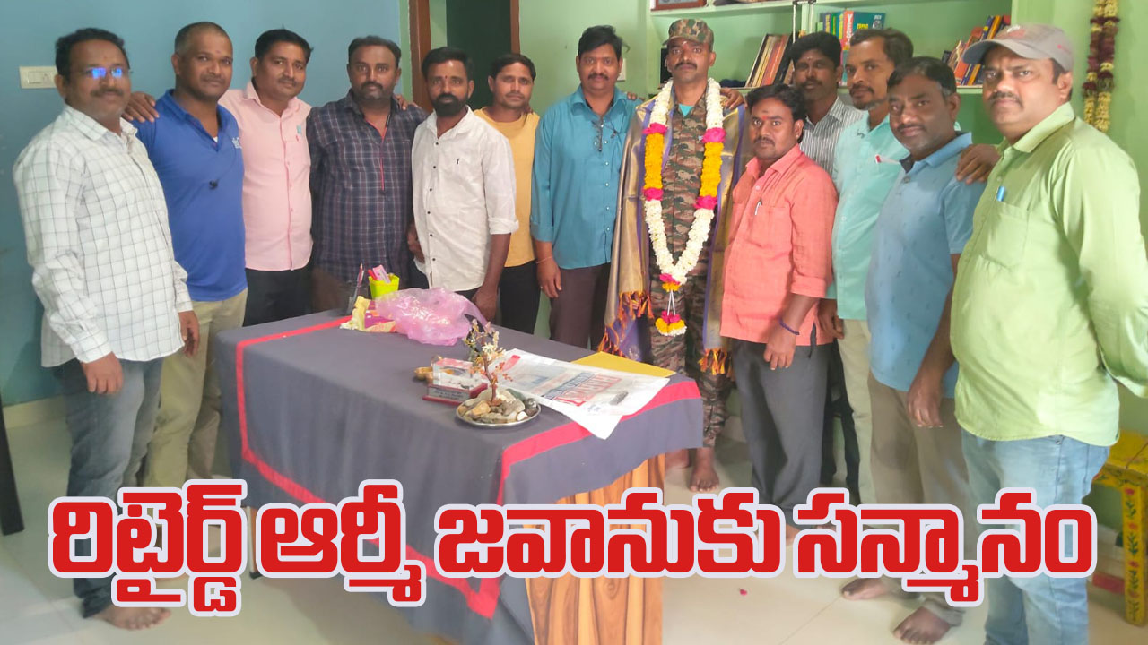 Retired Army Jawan: నిర్మల్ జిల్లా కేంద్రంలోని శాంతినగర్ జర్నలిస్టు కాలనీకి చెందిన రిటైర్డ్ ఆర్మీ జవాన్ దుంపెట నరేందర్ను అతని మిత్రులు ఘనంగా సన్మానించారు. 22 సంవత్సరాలు దేశ రక్షణ సేవలో నిమగ్నం కావడం సంతోషంగా ఉందని ఈ సందర్భంగా నరేందర్ తెలిపారు. ఆర్మీలో చేరే యువతకు దిశానిర్దేశం చేసేందుకు ముందుంటానని ఈ సందర్భంగా వెల్లడించారు. 1998-99 పదో తరగతి బ్యాచ్ మిత్రులు నరేందర్ను ఘనంగా సన్మానించారు. శాలువా కప్పి పూలమాలతో సత్కరించారు. ఈ సందర్భంగా ఆయన చేసిన సేవలను కొనియాడారు. కార్యక్రమంలో మిత్రులు రమణ, నరేశ్, దినేశ్, దివాకర్, రాజేంద్రప్రసాద్, నర్సయ్య, రాజు వర్మ, శ్రీనివాస్ గౌడ్, వినాయక్, కిషన్, మహేశ్, సాజిద్ పాల్గొన్నారు.