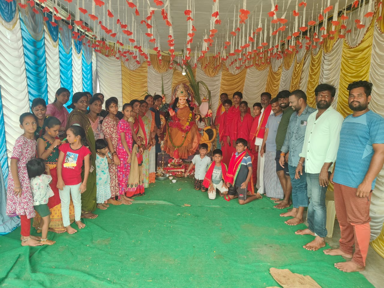 Sharannavaratri special pujas in Khanapur: నిర్మల్ జిల్లా ఖానాపూర్ మండలంలోని పాత ఎల్లాపూర్లో, పట్టణంలోని శ్రీరాంనగర్ భీమన్నా గల్లీలో శరన్నవరాత్రి ఉత్సవాల సందర్భంగా బుధవారం దుర్గమాత మండపాల వద్ద భక్తులు ప్రత్యేక పూజలు చేశారు. అన్నపూర్ణ దేవి అమ్మవారిగా మూడో రోజు దర్శనం ఇచ్చారు. అర్చకులు ఆధ్వర్యంలో అభిషేకం, పారాయణం, మంత్రపుష్పం, అర్చనలు నిర్వహించారు. భవాని దీక్ష పరులు భజనలు చేస్తూ పాటలు పాడారు. ప్రతి రోజూ వివిధ కార్యక్రమాలు భక్తిశ్రద్ధలతో నిర్వహిస్తున్నారు. కార్యక్రమంలో పంబాల భీమేశ్వర్, వినోద్, మైలారపు శ్రీనివాస్, గడ్డి రమేశ్, ప్రమోద్ కుమార్, నాగరాజు, భీంరావ్, శ్యాం పాల్గొన్నారు.