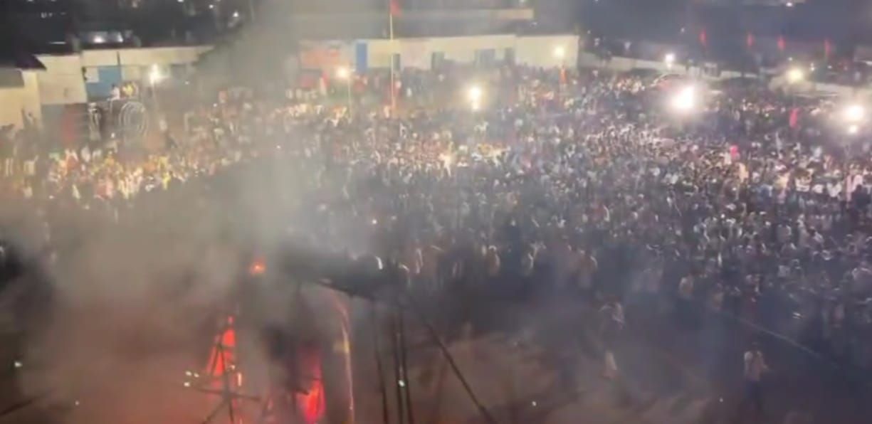 Vijayadashami Celebrations Khanapur 2025: నిర్మల్ జిల్లా ఖానాపూర్ పట్టణంలో విజయదశమి ఉత్సవాలు గురువారం రాత్రి నేత్రపర్వంగా కొనసాగాయి. శరన్నవత్రుల అనంతరం నిర్వహించే రావణ దహనం కార్యక్రమం వేలాది మంది మధ్య కన్నుల పండువగా జరిగింది. రాంలీలా మైదానంలో (ప్రభుత్వ కళాశాల ప్రాంగణంలో) హిందూ ఉత్సవ సమితి ఆధ్వర్యంలో ఘనంగా ఏర్పాట్లు చేశారు. ప్రత్యేకంగా స్టేజీ ఏర్పాటు చేసి, సాంసృతిక కార్యక్రమాలు నిర్వహించి, ఆట, పాటలతో అలరించారు. మహాలక్ష్మి ఆలయం నుంచి హిందు ఉత్సవ సమితి అధ్యక్షులు మంత్రారాజ్యం సురేశ్ ఆధ్వర్యంలో దుర్గమాత అమ్మవారి ఉత్సవ విగ్రహాన్ని రాంలీలా మైదానం వరకు డప్పు వాయిద్యాల మధ్య ఊరేగింపుగా తీసుకొచ్చారు. అనంతరం జమ్మి చెట్టుకు పూజలు నిర్వహించి, దసరా వేడుకల శుభాకాంక్షలు చెప్పుకున్నారు. వేల మంది ప్రజలు తిలకిస్తుండగా రావణసుర దహనం చేసి, టపాకాయలు కాల్చారు.